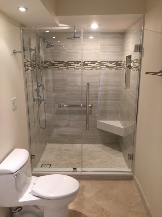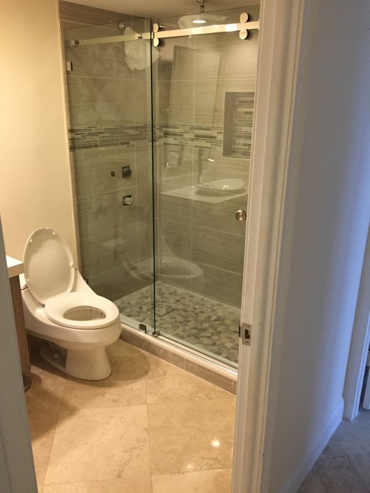 Renovation at 1450 Brickell Bay Drive. Bathroom Renovations, Impact Window Installation, Carpentry Work, Marble Floor Polishing